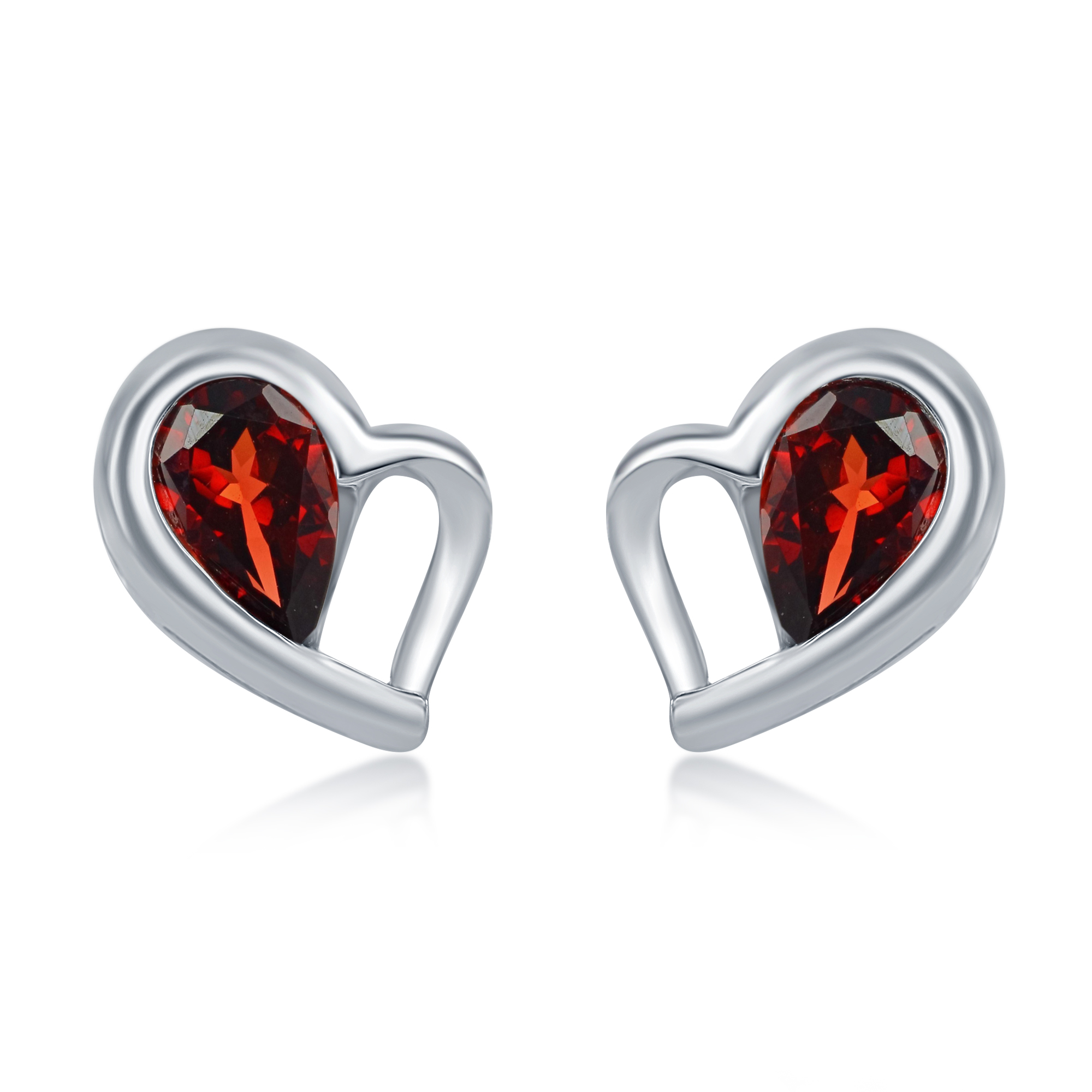 Garnet Heart Stud Earrings | Sterling Silver | Barnes Jewelers Goldsboro NC Barnes Jewelers Goldsboro, NC