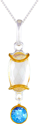 (919) 778-2765MICHOU Mother of Pearl Necklace, Sterling Silver and 22KT Gold Vermeil, Mother of Pearl + Quartz and Sky Blue Topaz, 18" 197052
